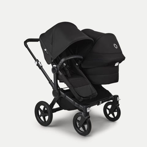 I superfint skick. Tvillingvagn. Chassit är svart med en möjlighet att justera bredden i sidled och därför ges möjlighet att köra både två och ett barn. När en stol är monterad så kan även det sättas på en sidokorg. Tvillingvagnen har två liggdelar och två sittdelar samt en sidokorg.