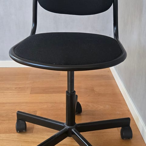 Stolen är i väldigt bra skick, är höj- och sänkbar, snurrar och har 5 hjul.