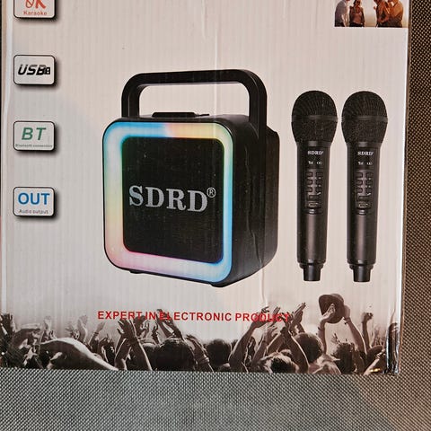 Säljer en karaokehögtalare med dubbla mikrofoner i mycket fint skick. Perfekt för hemmakvällar, fest, karaoke och barnkalas. Smidig och portabel modell med bra ljud för sin storlek.