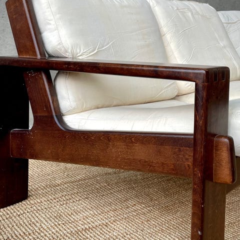 Orginaldynor/ kuddar medföljer utan överdrag. Dynorna/ kuddarna är hela och i bra men använt skick med lättare missfärgningar.
