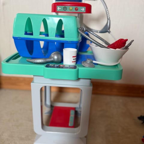 Fint leksakskök för barnen. Höjd 78 cm, längd 53 cm, bredd 35 cm. Ganska litet kök så passar bra i utrymmen där de större leksaksköken inte går in, t ex i litet kök när barnen gärna vill "laga mat" bredvid de vuxna.
