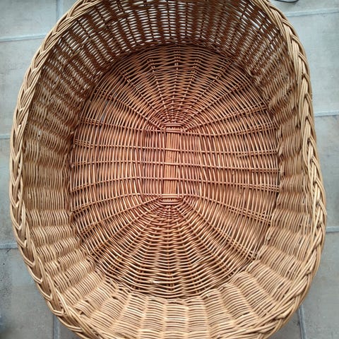 Hundkorg i grå plast. Knappt använd. Bara någon reva i plasten. Yttermått ca 60 djup, 82 bred, 20 höjd. Hundkorgen är av märket Siesta om du vill söka mer info på nätet.