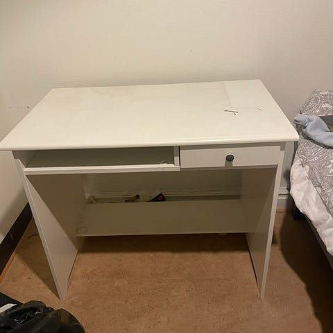 Micke skrivbord från IKEA med påbyggnadsdel.