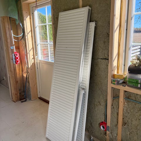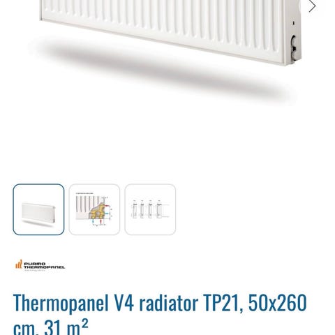 Vit panelradiator för vattenburet värmesystem. Radiatorn är brett 2 m och lågt 40 cm med anslutning på höger sida med termostatventil. Passar för uppvärmning av inomhusutrymmen där väggmonterad radiator önskas.
