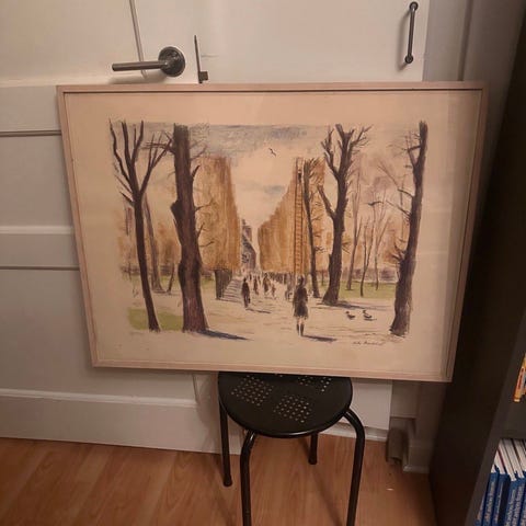 Tavla med motiv av en valvgång/ruinliknande arkitektur. Nypris 1600 SEK. Bredd 60 cm Höjd 79 cm. Hämtas i Hornstull.
