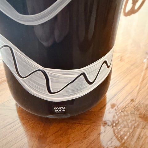 Kosta Boda glasvas rosa ansiktsmotiv, Ulrica Hydman Vallien