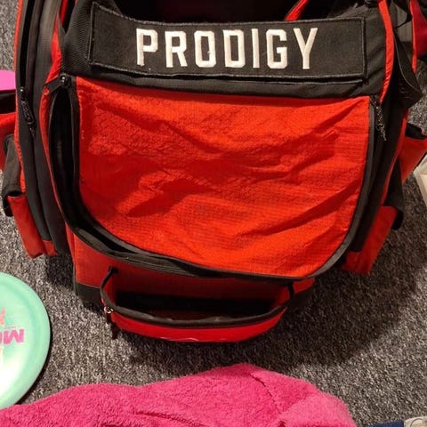 MVP Disc Sports discgolfväska i ryggsäcksmodell i blått och beige tygmaterial. Väskan har stort huvudfack anpassat för discar samt ytterfack med dragkedja på framsidan. Sidorna har flera mindre fack och hållare, till exempel för vattenflaska och tillbehör. Axelremmarna är vadderade och baksidan har vadderad panel för ökad bärkomfort. Passar för transport och förvaring av discar och annan utrustning vid discgolfspel.