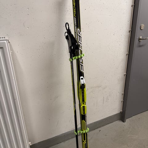 Fischer 150cm med pjäxor storlek 37 och stavar, bra skick