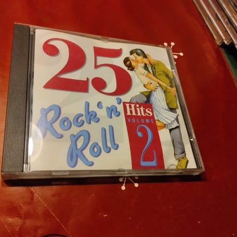 Jag säljer nu en CD-skiva med 25 Rock ’n’ Roll Hits Volume 4 musik-CD med samling av rock ’n’ roll-låtar. Standard CD-format i plastfodral med tryckt omslag fram och bak. Baksidan listar samtliga 25 spår med låttitlar och artister. Lämplig för uppspelning i vanliga CD-spelare och datorer med CD-enhet.