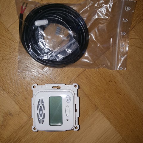 Termostaten har bakgrundsbelyst LCD display, inbyggt överhettningsskydd, inbyggt energisparprogram med justerbara tider och temperaturer kan justeras individuellt