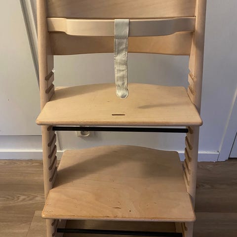 Tripp Trapp barnstol i trä med naturfärgad finish. Barnstolen har justerbar sittplatta och fotstöd som kan anpassas efter barnets längd. Passar som matstol eller sittstol vid bord och kan användas under flera år tack vare den flexibla konstruktionen. Tillverkad i trä med klassisk design som fungerar i de flesta hemmiljöer.