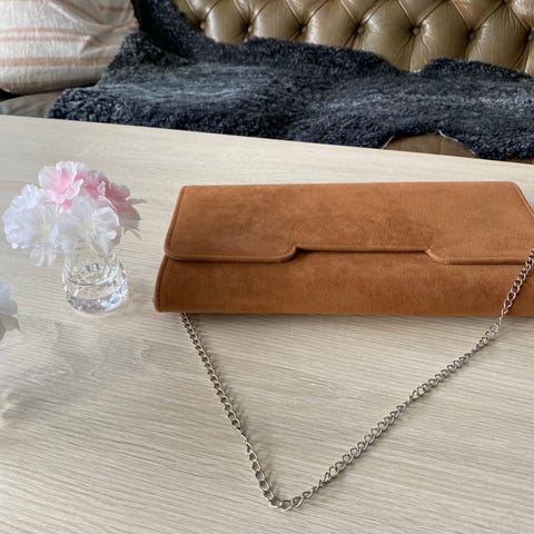Säljer en elegant guldfärgad kuvertväska med kedjerem. Använd endast en gång i cirka 30 minuter. I nyskick.