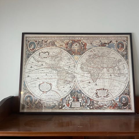 Inramad karta över Stockholm. Mässingsram. 71x51 cm.