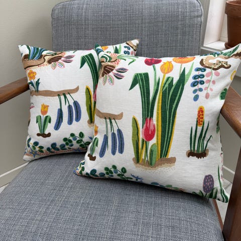Intressekoll för min kudde från Svenskt Tenn med motivet Primavera. Mycket bra skick. Enbart använd som prydnad. Original från butik, dvs inte sydd av sömmerska. Nypris 2200kr.