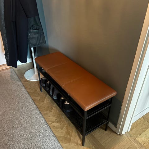 Skohylla med sittbänk metall och brun sits från Scandi Living