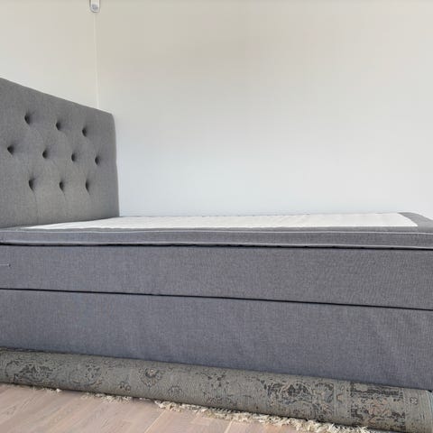 Mio, 120cm sängmadrass. Madrassen har vit liggyta och grå sidor.