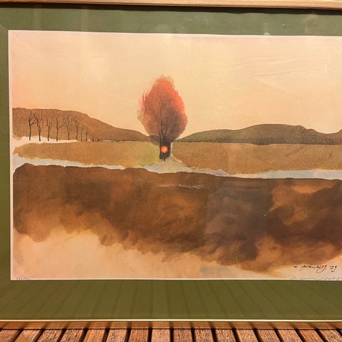 Signatur: Bilden visar en handskriven signatur i blyerts, vilket är vanligt för begränsade upplagor av grafik.