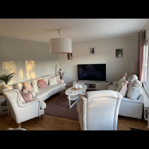 Divansoffa B 285 D 195 H 80 sitthöjd 43 sittdjup 59. Divan höger. 5 månader gammal. Nypris 13000 Mio