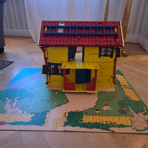 Säljer ett Pippihus med de tillbehör som syns på bilden. Mattan går att vika ihop, har gått sönder men går att använda ändå.