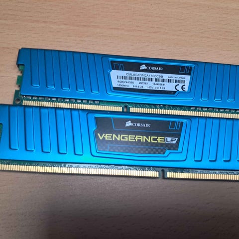Corsair Vengeance LP RAM-minne för stationär dator. Modulerna är i vit färg och av standard DDR3/DDR4-typ för desktop (exakt specifikation framgår av etiketten på modulerna).