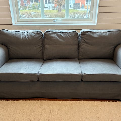 Klädsel till Ektorp tresitsiga soffa 2 stycken. Klädsel till Ektorp fåtölj och fotpall. Mycket fint skick endast använt i två månader, inget slitage , fläckar el.dyl.