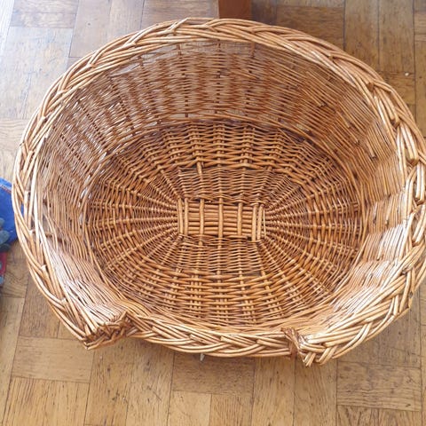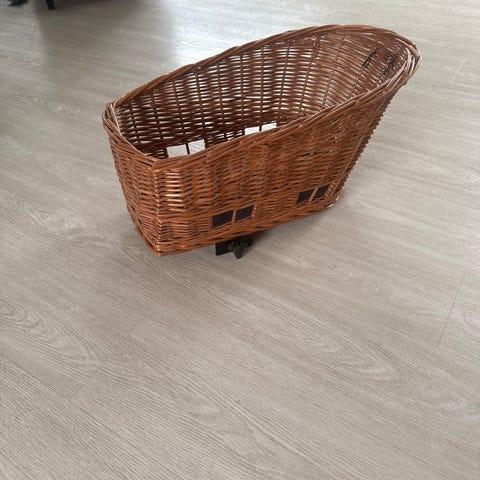 Stor hundkorg, L 91 cm H 23 cm B 72 cm, själv har jag använt korgen för att förvara saker i, har aldrig haft husdjur.
