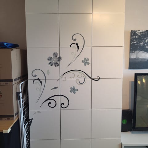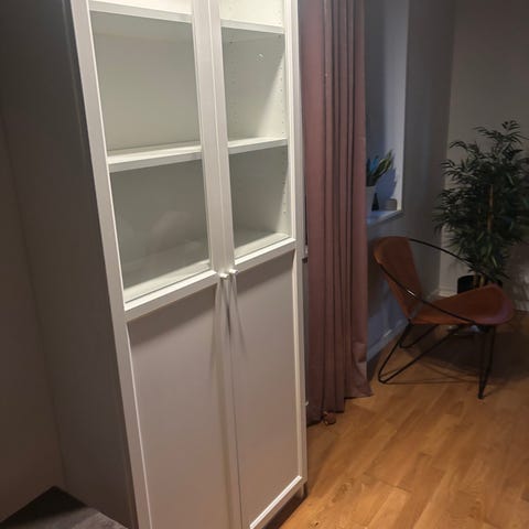 Vitrinlucka från Vedum. OBS MINDRE TRANSPORTSKADA (se bilder). Den skadade vitrinluckan är oöppnad i förpackning. Bilden på vitrinluckan som är upphängd är den nya som skickades (bild enbart för att visa hur den ser ut).