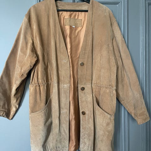 Säljer en tuff brun mockajacka från Rock'n Blue med dekorativa detaljer.