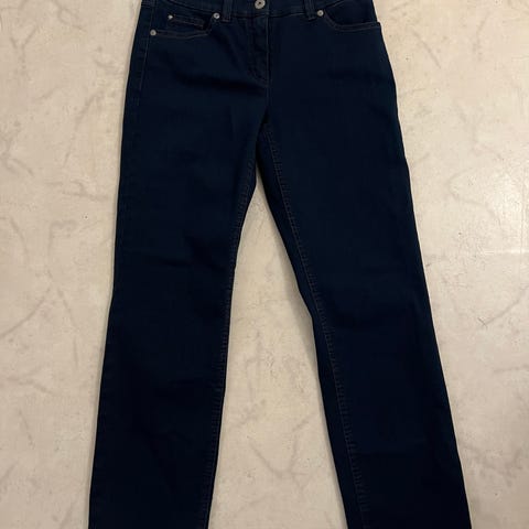 Replay jeans för dam i storlek S med midjemått W28. Färg svart med lätt tvättad effekt. Klassisk femficksmodell med hällor för skärp, dragkedjegylf och knappstängning. Långa ben med rak passform. Materialet är denim, troligen bomullsblandning med viss stretch baserat på utseendet. Passar som vardagsjeans eller till enklare uppklädda tillfällen.