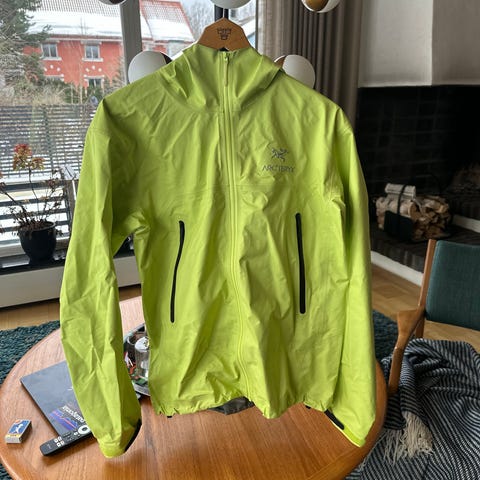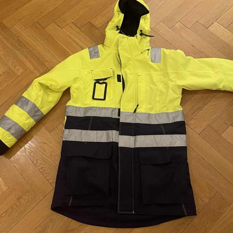 Damjacka arrak outdoor high visability, storlek M. I använd men gott skick, inga skador men lite smutsig. Ska försöka tvätta upp den men inte säkert att den blir helt ren.