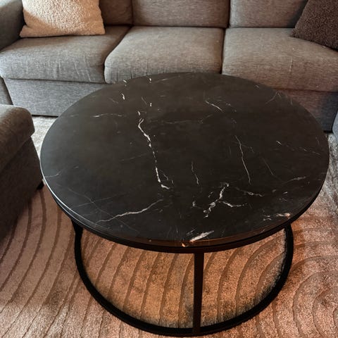 Säljer ett stilrent och exklusivt soffbord i trä med svart utförande och en tidlös, modern design. Bordet har endast stått i vardagsrummet i cirka två veckor och är därför mycket sparsamt använt samt i mycket fint skick.