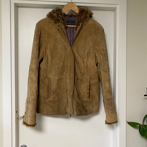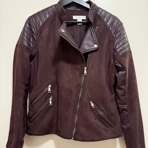 Säljer en ny, congnacsfärgad mockajacka från Vila med klassisk biker-stil.
