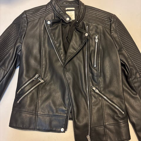 Design: Klassisk biker-modell med asymmetrisk dragkedja, knappar och fickor
