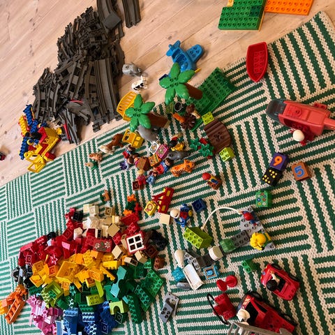 Barnen har lekt klart med sitt Lego duplo och vill nu sälja vidare.