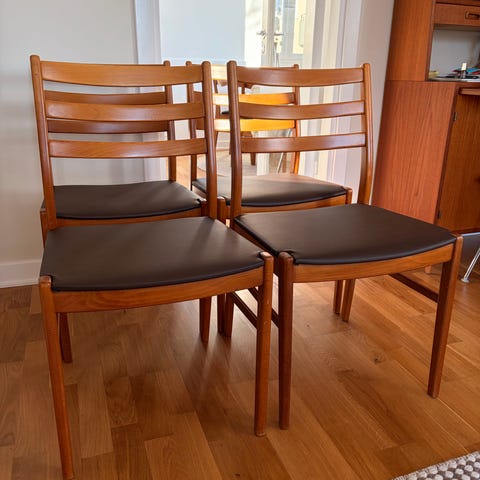 5 st Stolmannen Tranås matstolar – teak – fint skick