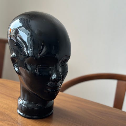 Vintage unikt prydnadshuvud, West Germany. Användes från början för uppvisande av hattar / huvudbonader. Jag har ett svart likadant som jag använder som hållare till mina hörlurar. Huvudet är 30cm högt och väger 1700g.