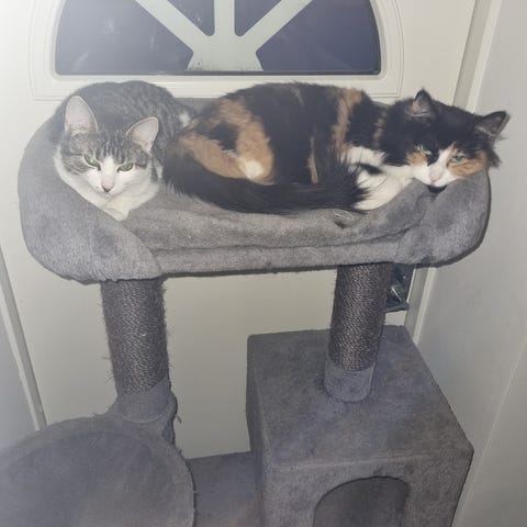 Bor i 90 kvm lägenhet med ”kattrivsel” mellan golv och tak som klätterträd, hyllor, sovplatser, samt två balkonger med nät.