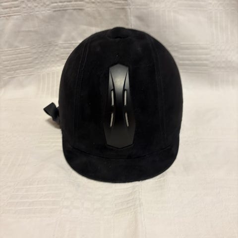 Hjälmen har justerbart hakband och vred baktill för anpassning av passformen. Ventilationsöppningar finns framtill och baktill. Avsedd för ridning. Enbart använd ett fåtal ggr. Finns i Jakobsberg.
