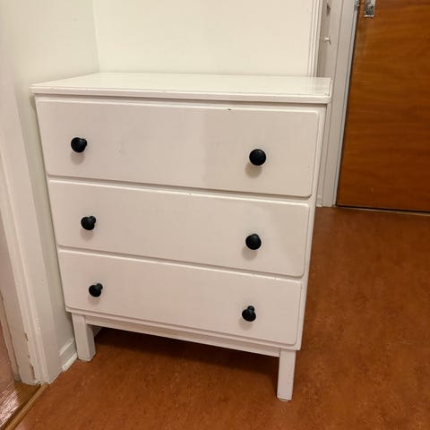 Gis bort IKEA byrå. Enkel trä. Ena benet är lite sprucket men stabilt. Annars rent och fullt användbart.