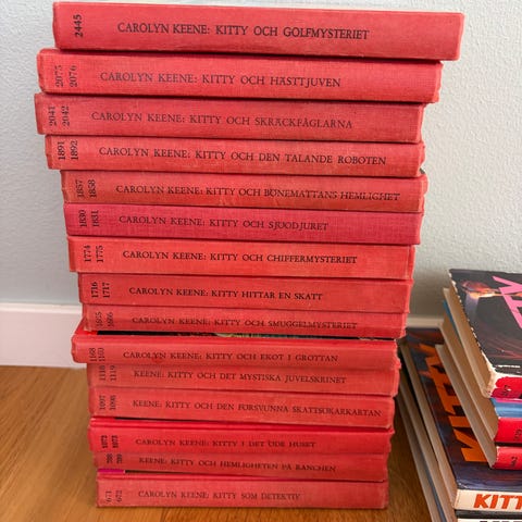 En banankartong med Kitty och femböcker framförllt. Men även Biggles, Maria Gripe mm. En tar hela kartongen