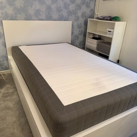 Hej säljer en Jysk säng med förvaring i grå färg 90 säng ingår två madrasser om man vill ha dom en är en vanlig och den andra som ingick i sängen och det är en tempur madrass väldigt bekväm köpte den för 3.000 kr ungefär för 2 år den som köper bär ner och fixar allt själv så bärhjälp bör hämtas mvh