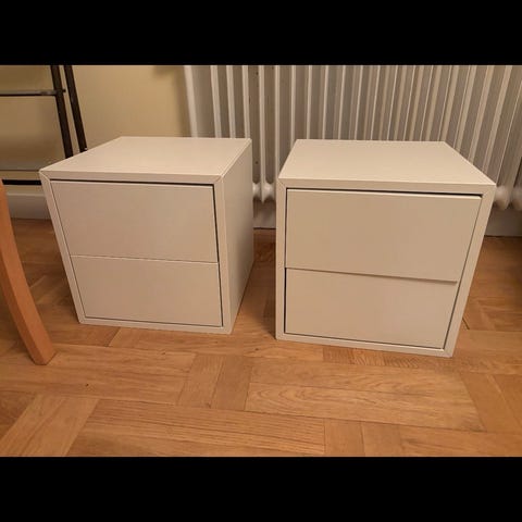 Sängbord med läder/mässingshandtag