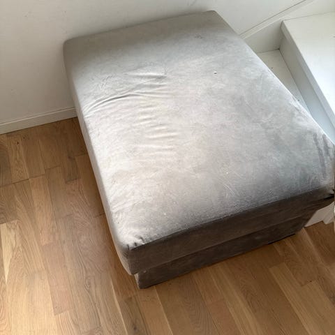 Säljer en Baggen från Sweef som funkar såväl som fotpall som sitppuff eller bord om man lägger en skiva på. Grå sammetsliknande tyg, där tyget blr i lite olika nyanser beroende på hur tyget ligger.