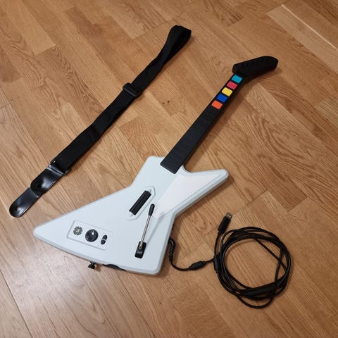 Nintendo Wii spelkonsol vit med spel och gitarrkontroller