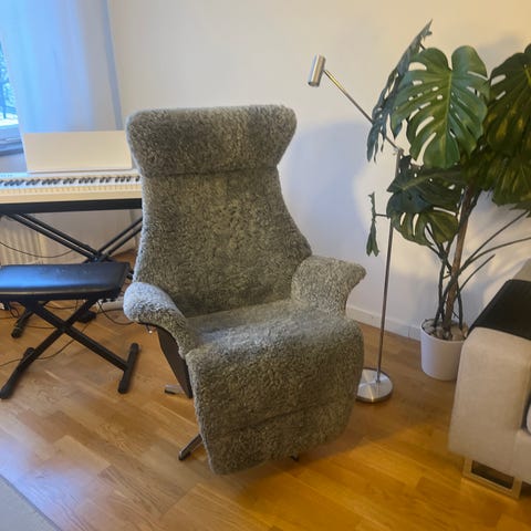 Vi säljer våran Life fåtölj vit fårskinn från MIO på grund av brist i plats .