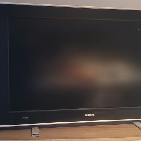 Philips 32PFL5404H tv med platt skärm i svart utförande. Modellen har inbyggd högtalare och är avsedd för användning inomhus, exempelvis i vardagsrum eller sovrum. Tv:n står på en rektangulär fot och ansluts via nätkabel på baksidan. På baksidans etikett finns modellbeteckning och teknisk information om effektförbrukning och tillverkningsdata. Lämplig som huvudtv eller extratv i hemmet.