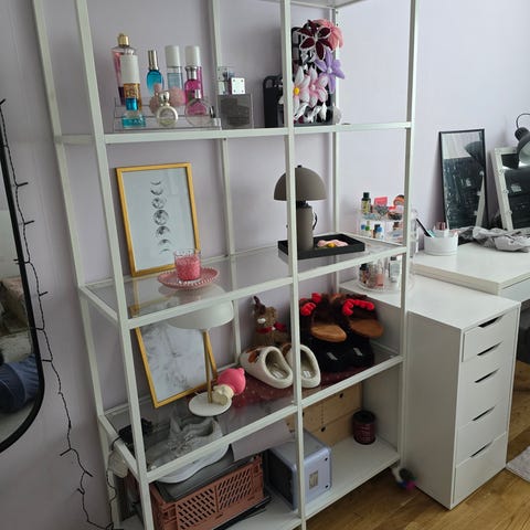 Säljer en svart Brimnes bokhylla. I nedersta hyllplan/fack nedre hörn (se bild) finns ett litet hål jag gjort till stereokabel. Annars i gott skick.