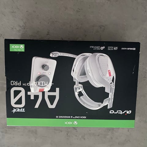 Astro A50 trådlöst gamingheadset med basstation för Xbox One. Headsetet levereras med laddnings- och sändarstation (base station) som används för trådlös anslutning till Xbox One. Over-ear-design med inbyggd mikrofon anpassad för spel. Headsetet är främst avsett för användning tillsammans med Xbox One-konsol och är lämpligt för röstchatt och spel-ljud i hemmamiljö.