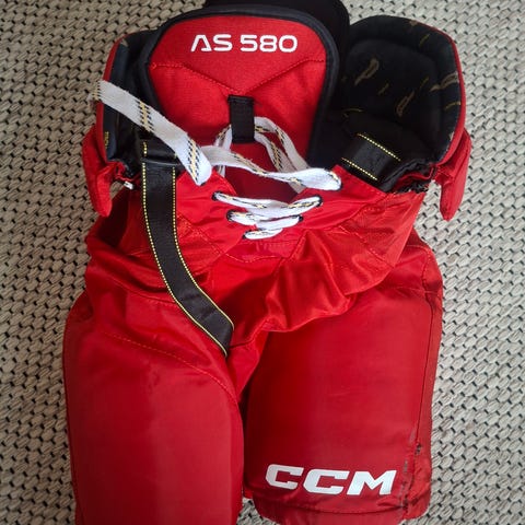 CCM HG 4R Pro hockeyhandskar i storlek 15 tum (38 cm). Handskarna är i färgerna svart och röd med vit logotyp.