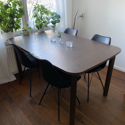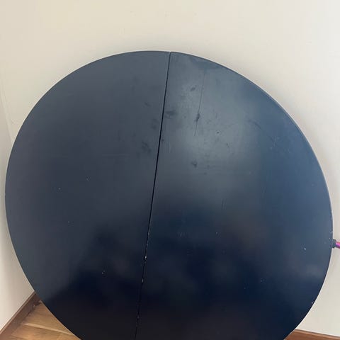 4 ben, fin färg och inte solblekt. Diameter 117cm, höjd 74.